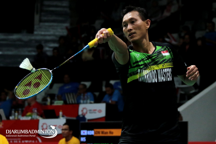 Sony Dwi Kuncoro (Indonesia) Mengembalikan Shuttlecock