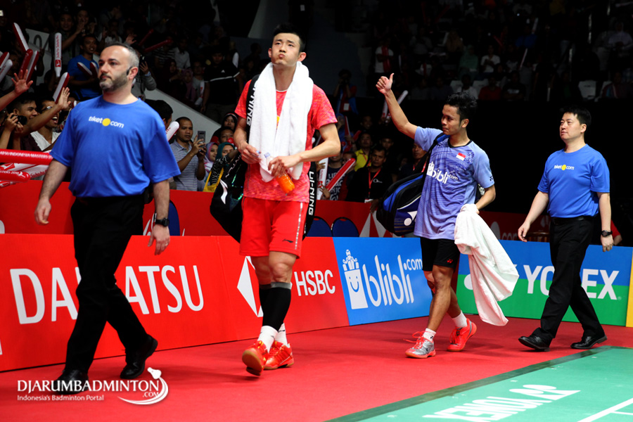 Anthony Sinisuka Ginting (Indonesia) Memberikan Apresiasi Kepada Seluruh Pendukung Yang Memenuhi Istora Senayan