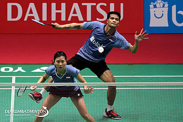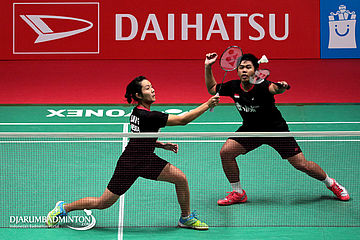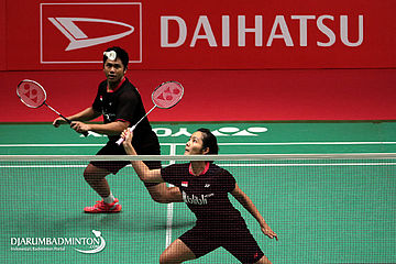 Yantoni Edy Saputra/Marsheilla Gischa Islami (Indonesia) Mengembalikan Shuttlecock