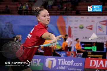Kitti Szotak (Hungary) Mengembalikan Shuttlecock Lawan