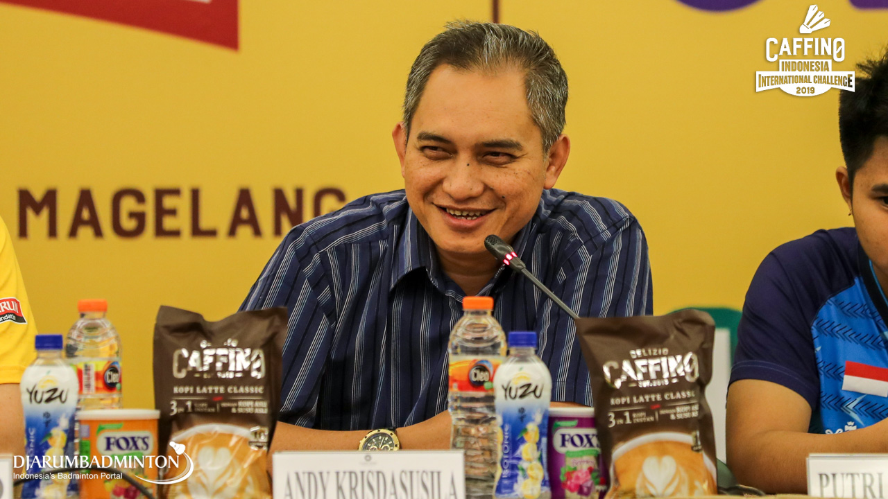 Sabar Karyaman Gutama saat Press Conference CAFFINO Indonesia International Challenge 2019