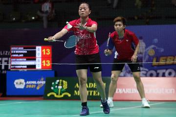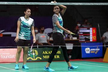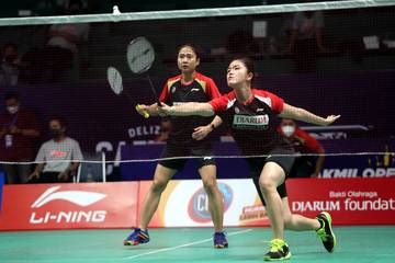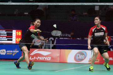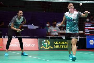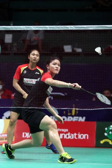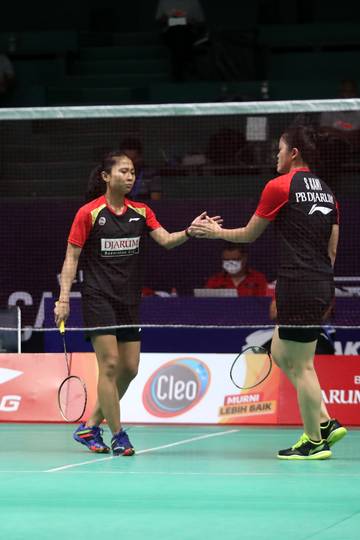 Dua ganda putri Brigita Marcelia Rumambi/Meirisa Cindy Sahputri (Berkat Abadi) dan Ni Ketut Mahadewi Istarani/Serena Kani (PB Djarum Kudus)