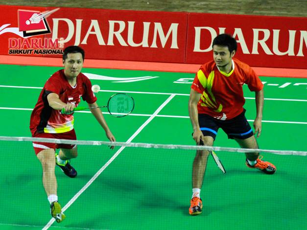 Pemain nasional, Alvent Yulianto, yang berpasangan dengan M. Nur Rofii memastikan gelar juara Djarum Sirkuit Nasional (Sirnas) Lampung Open 2013, Sabtu (13/4). Pasangan ganda putra ini naik ke podium juara usai menyingkirkan unggulan utama, Chrisna Adi Wijaya/Ridho Akbar, lewat dua game langsung, 21-15 dan 21-16.