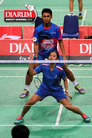 Laga sengit terjadi di perempat final ganda campuran dewasa Djarum Sirkuit Nasional (Sirnas) Sulawesi Selatan Open 2014, Kamis, (6/3). Seluruh semifinalis di nomor ini harus melalui pertarungan tiga game lebih dulu untuk berebut tiket semifinal.