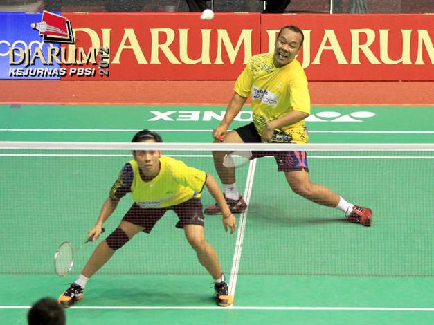 Pertemuan unggulan dua, Trikus Harjanto/Nadya Melati melawan Achmad Rivai/Aris Budiharti berlangsung ketat. Unggulan dua itu sempat ketar ketir saat sang lawan mampu menyamakan angka di kedudukan 20. Menang pengalaman dan jam terbang, pasangan Trikus/Nadya menutup game pertama dengan 22-20.