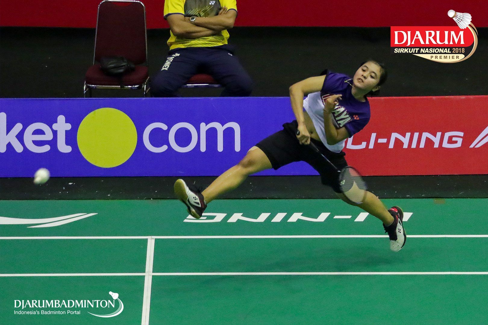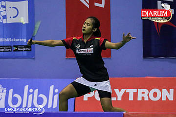 Desima Aqmar Syarafina (PB Djarum, Kudus) bersiap menyambut shuttlecock
