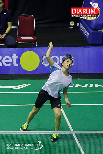 Natsuki Higuchi (Jepang) bersiap melakukan serangan