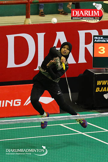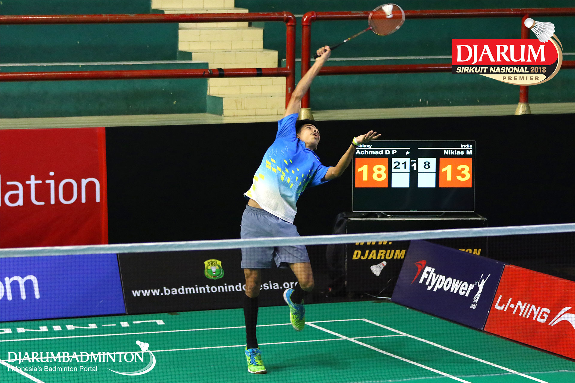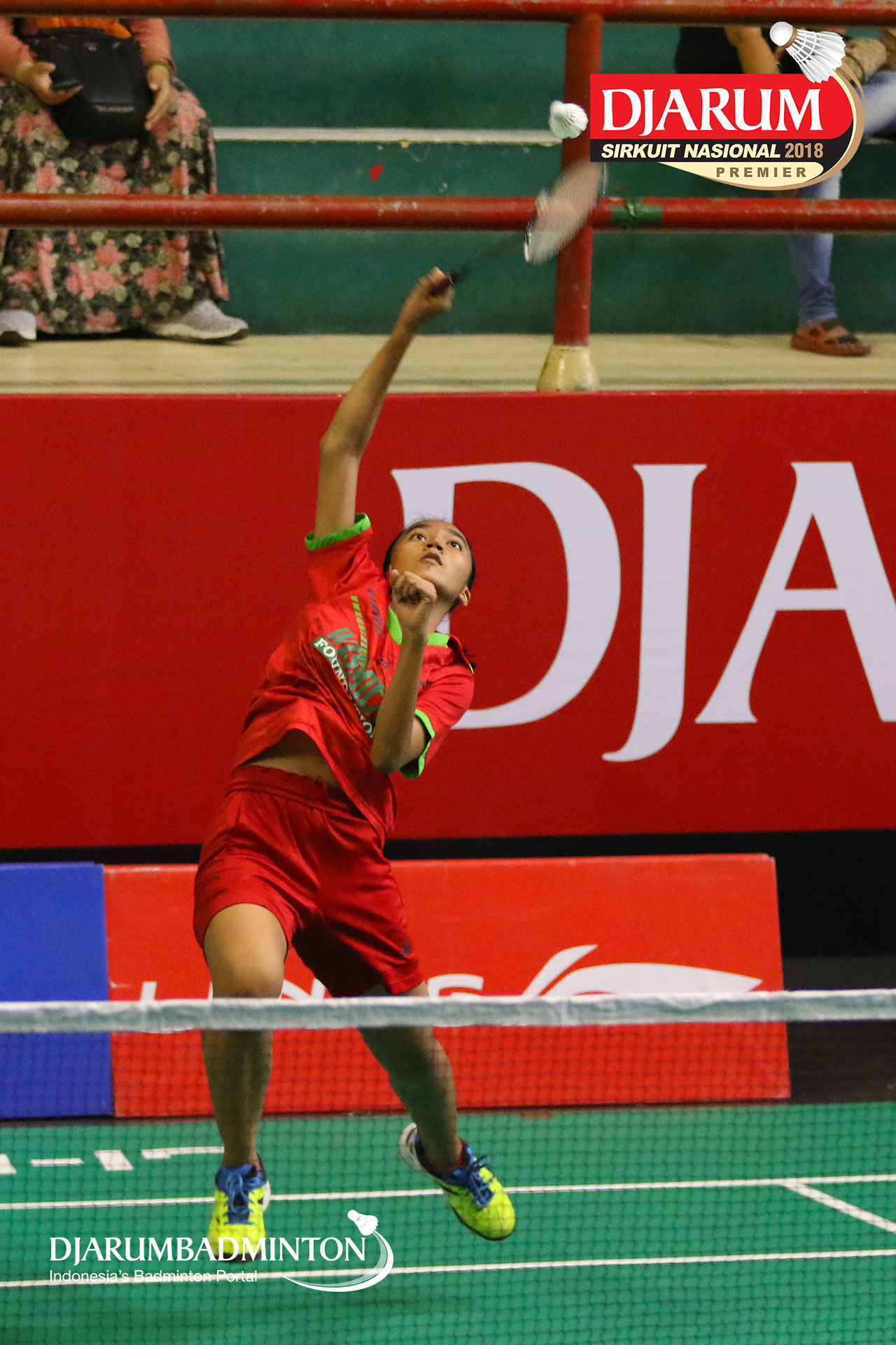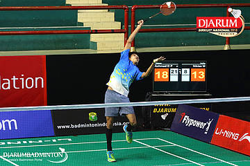 Adam Muchtar Hidayat (Pratama Badminton Academy, Kediri) berusaha menyambut shuttlecock