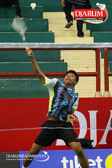 Adam Muchtar Hidayat (Pratama Badminton Academy, Kediri) bersiap melepaskan serangan
