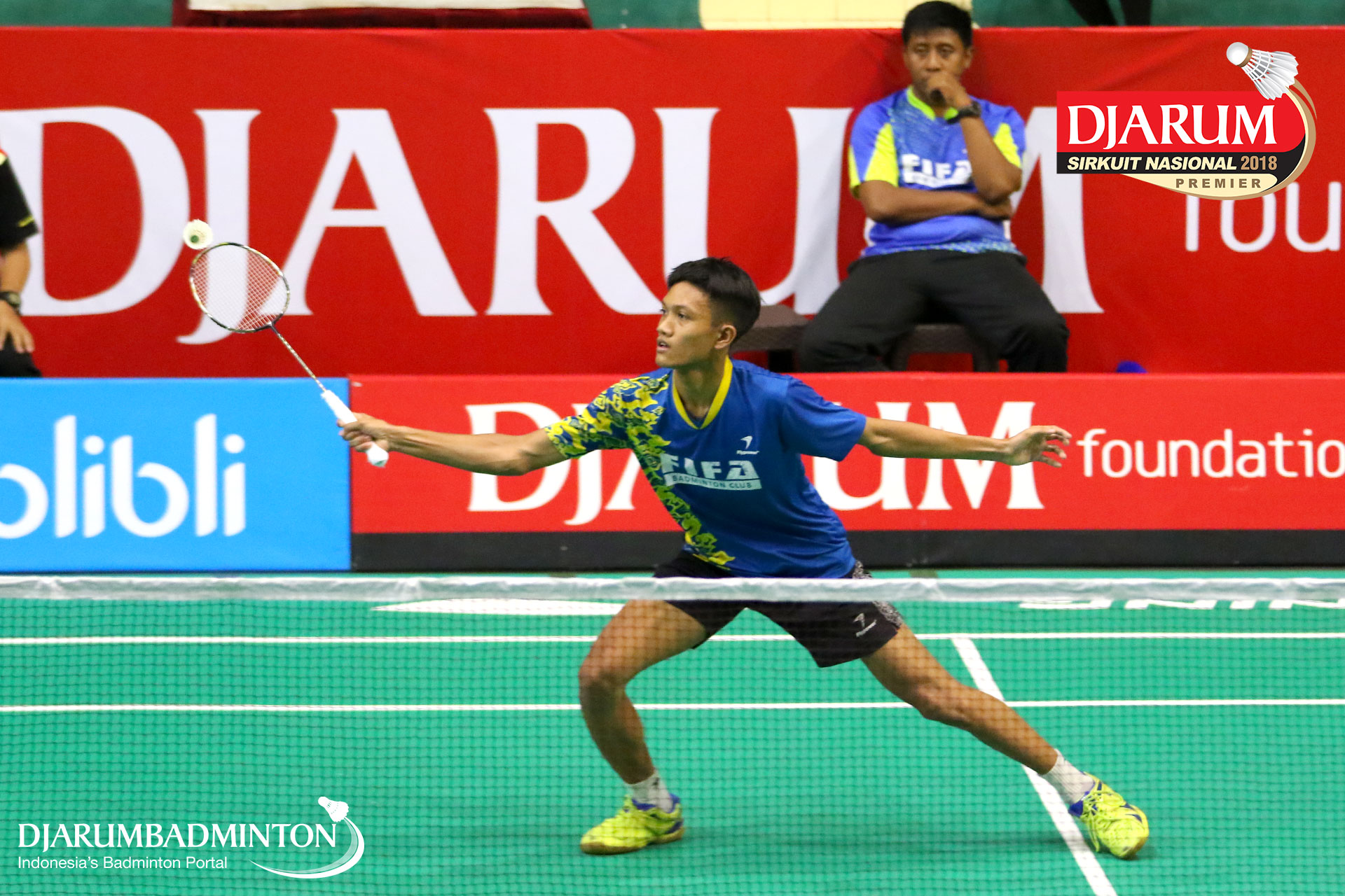 Mohammad Fino Romadhoni (FIFA BC) bersiap menyambut shuttlecock