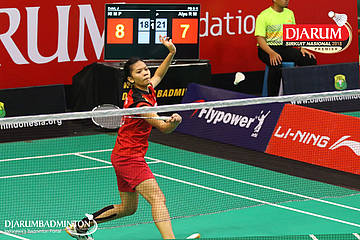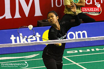Alya Rahma Mulyani (PB Djarum, Kudus) bersiap menyambut serangan