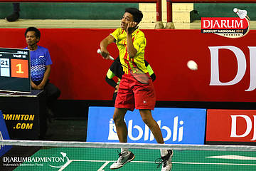 Syabda Perkasa Belawa (PB Djarum, Kudus) mengembalikan serangan