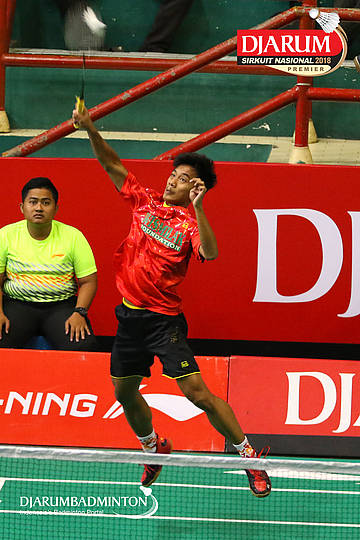 Satria Maulana Rahmadi Lubis (Pratama Badminton Academy, Sby) mengembalikan shuttlecock