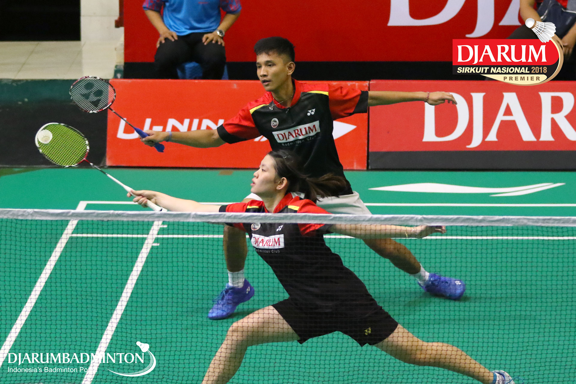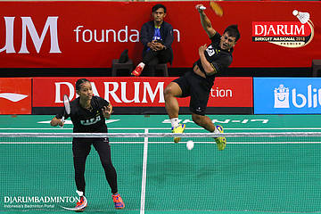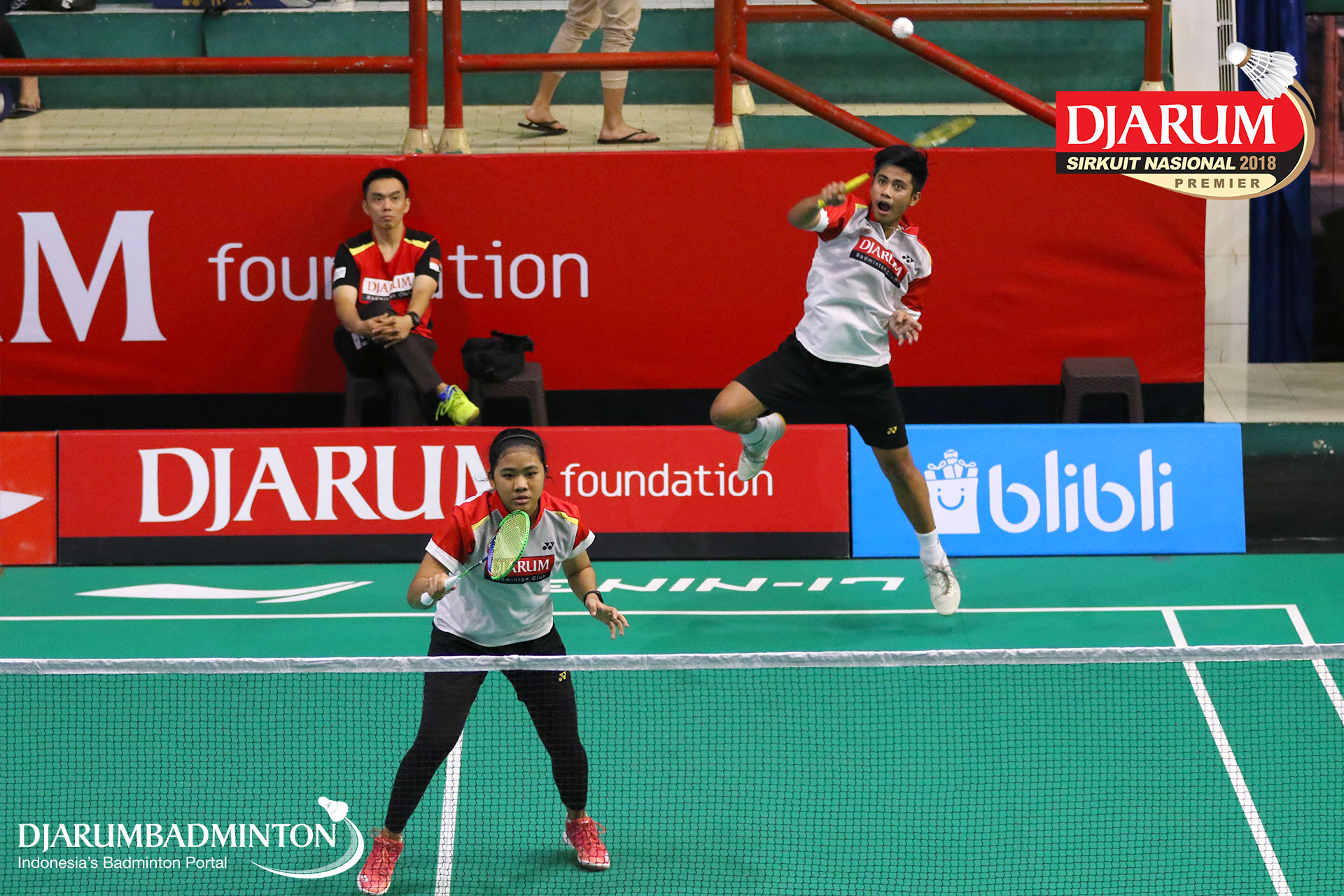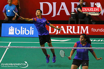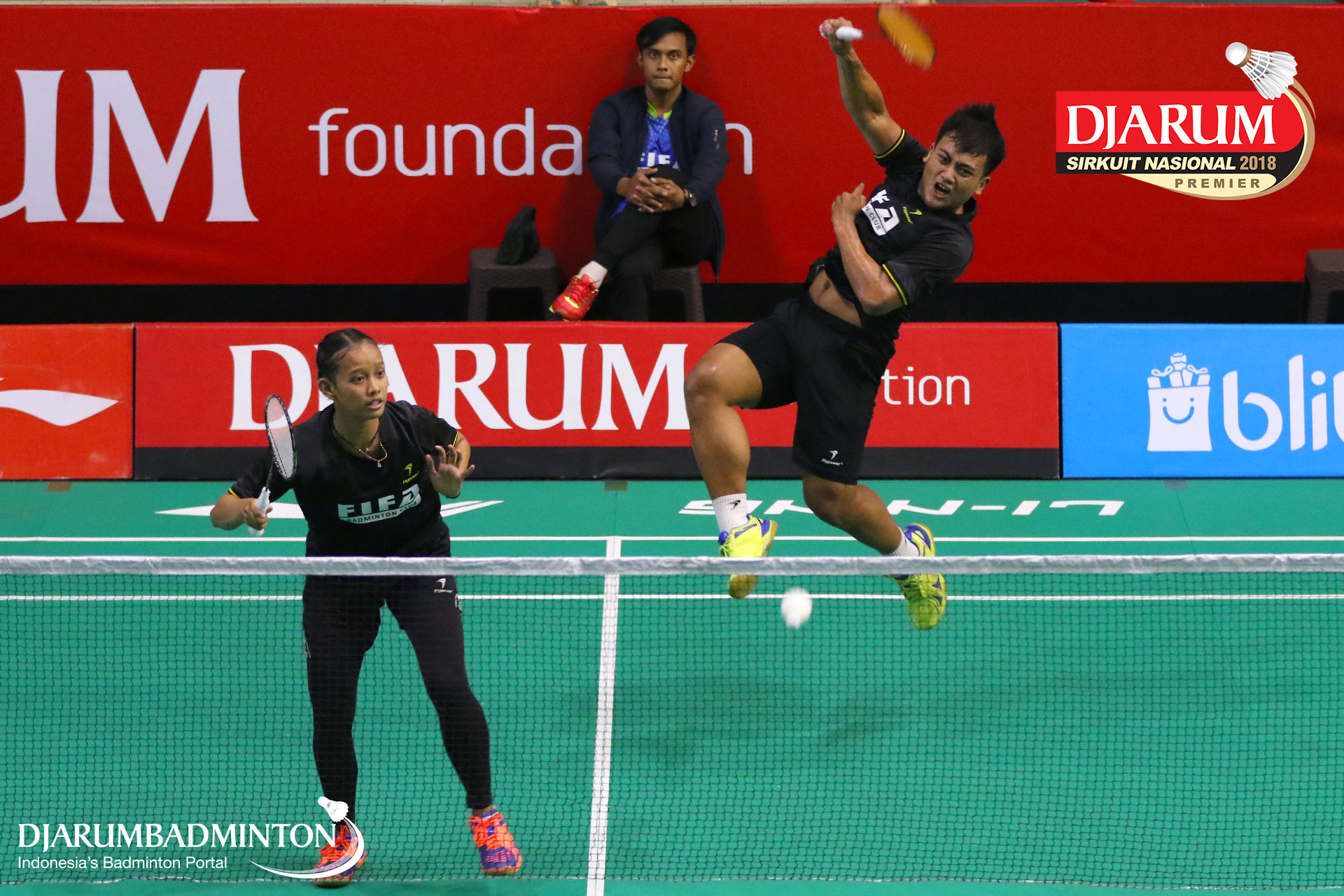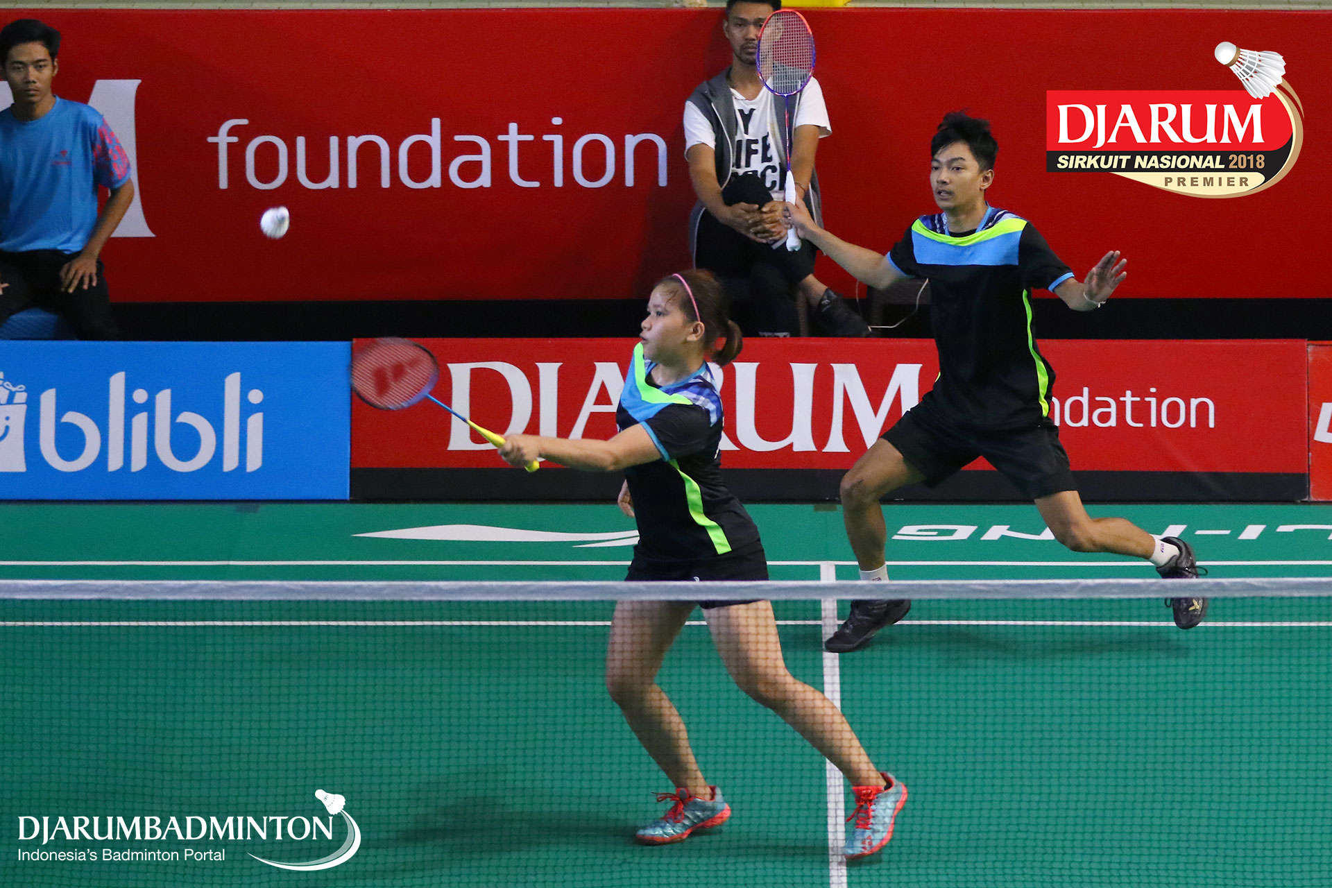 M. Lucky Andres Apriyanda/Helena Ayu Puspitasari (PB Djarum, Kudus) berusaha menyambut serangan