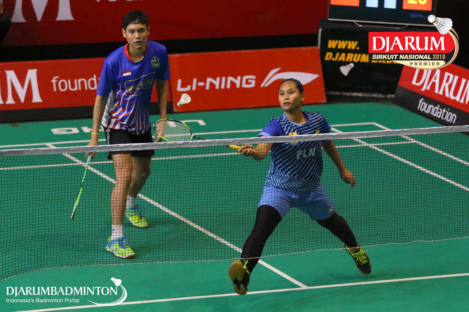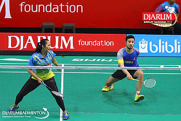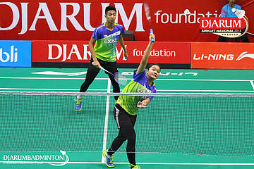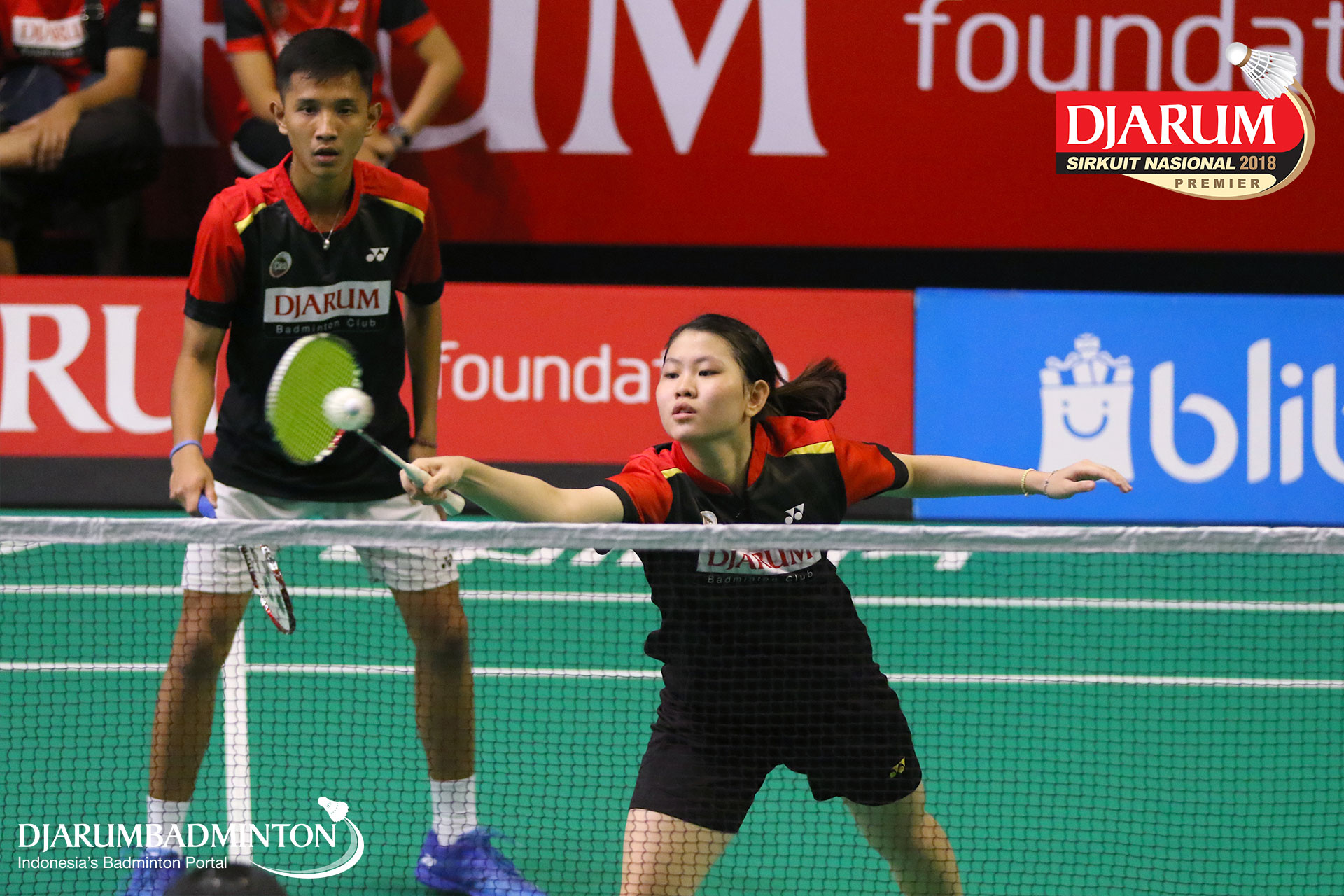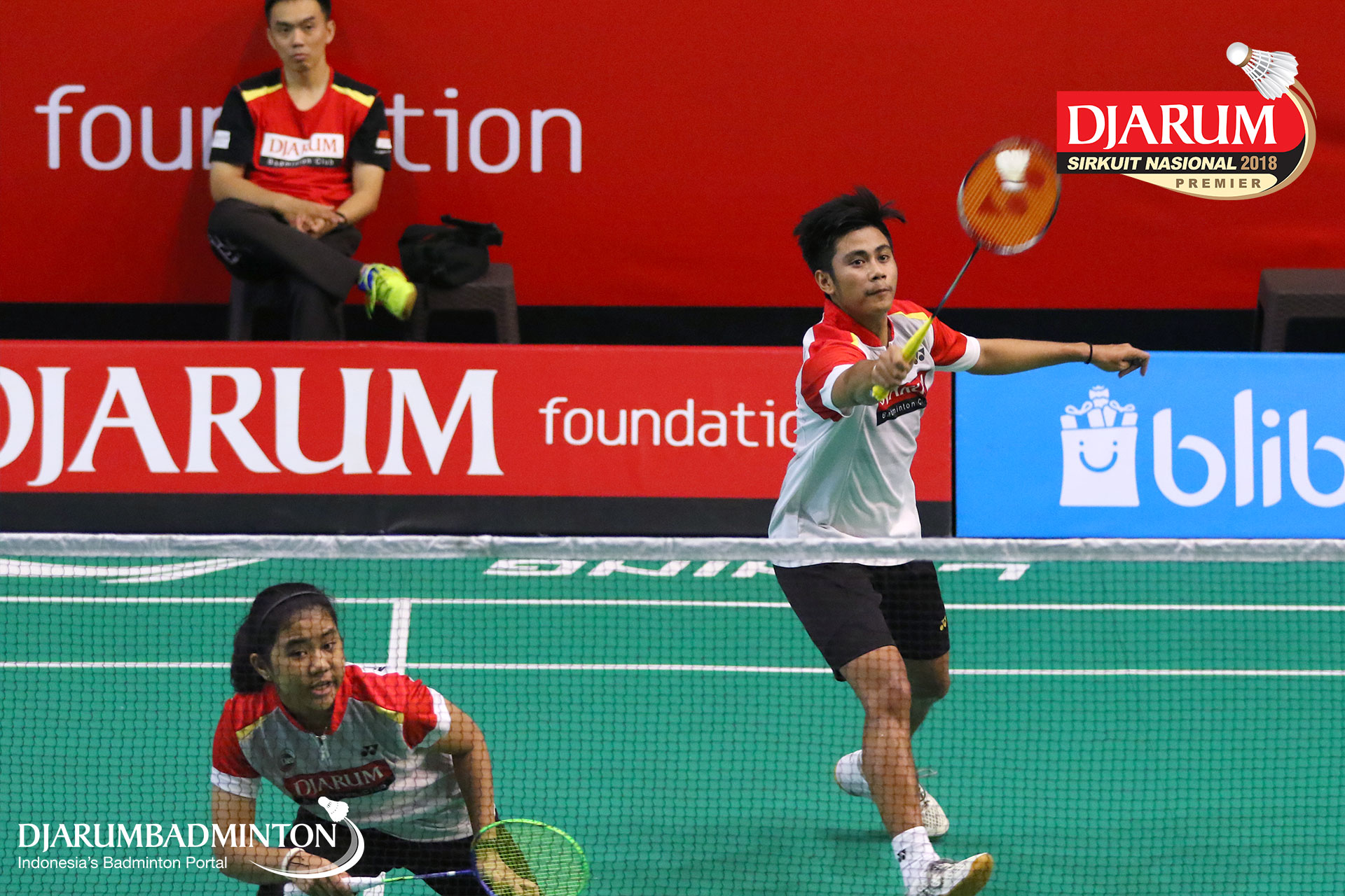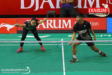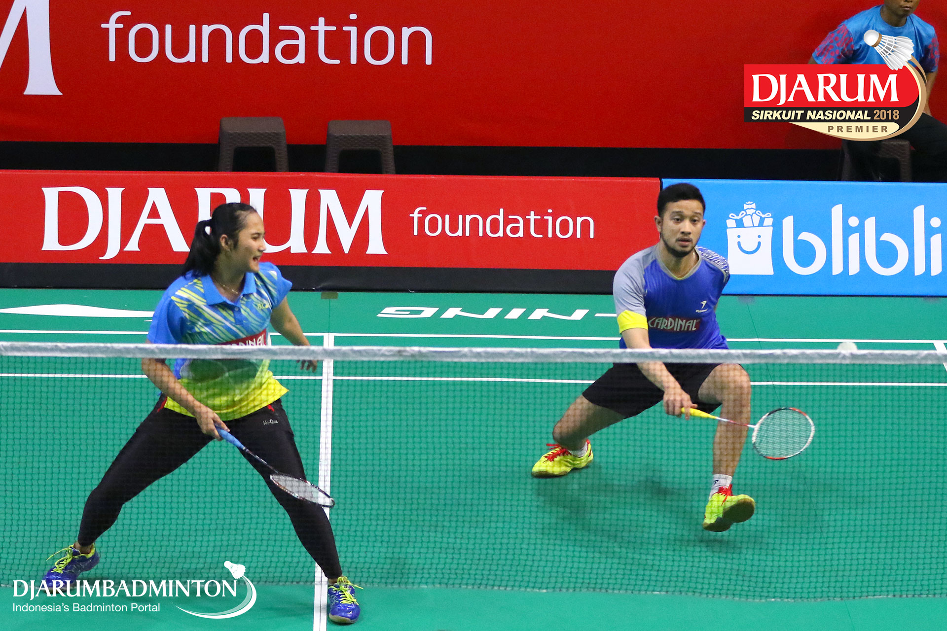 M. Lucky Andres Apriyanda/Helena Ayu Puspitasari (PB Djarum, Kudus) berusaha menyambut serangan
