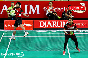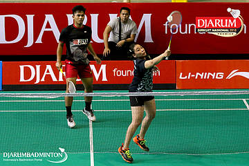 Reinard Dhanriano/Maretha Dea Giovani (Mutiara Cardinal, Bandung) menyambut serangan