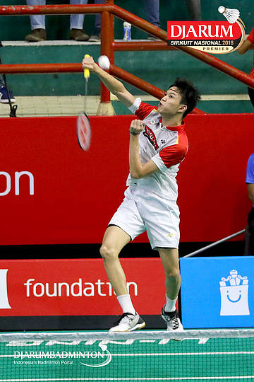 Herdian Muhammad Labib (PB Djarum, Kudus) melepaskan serangan