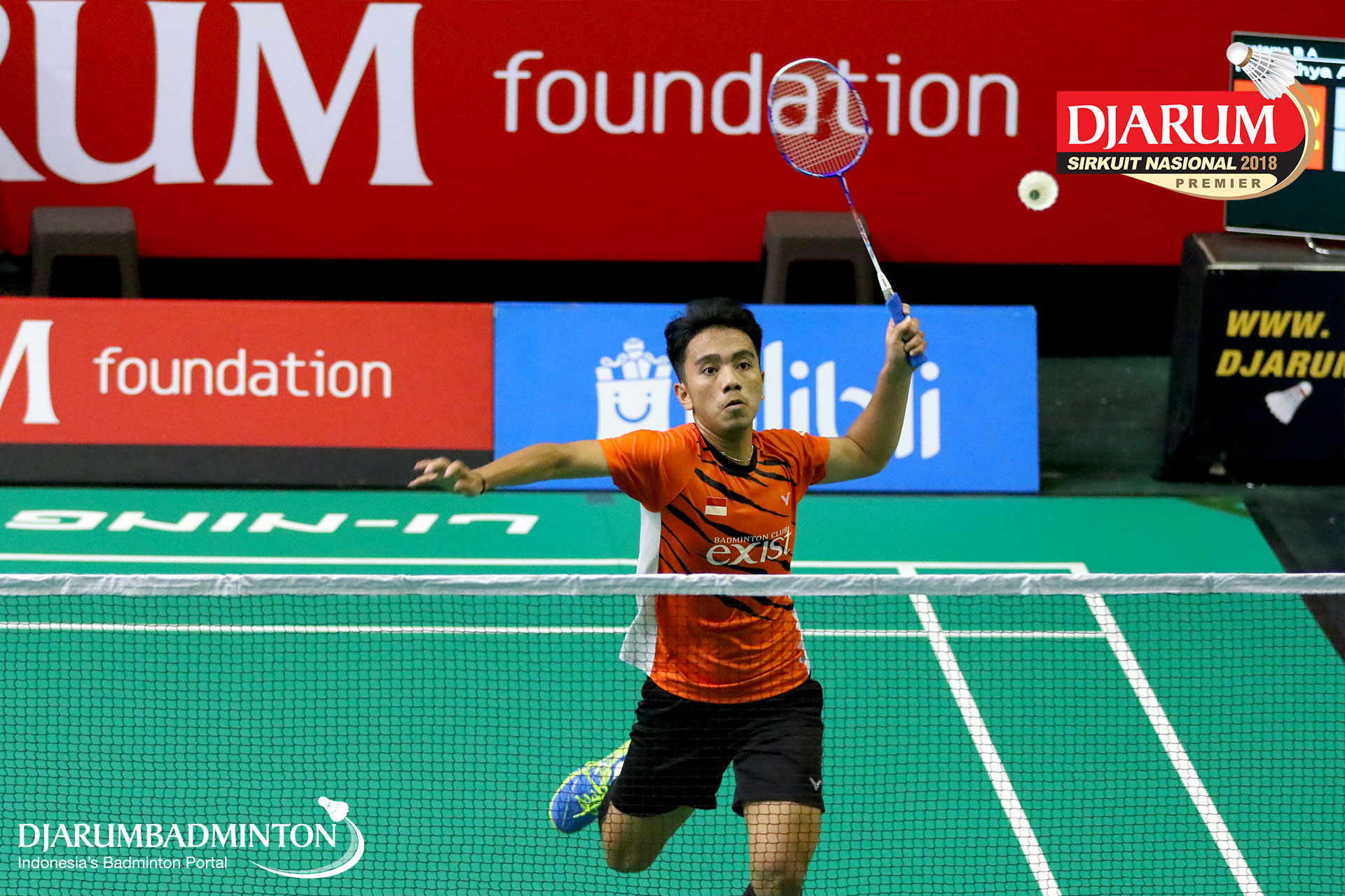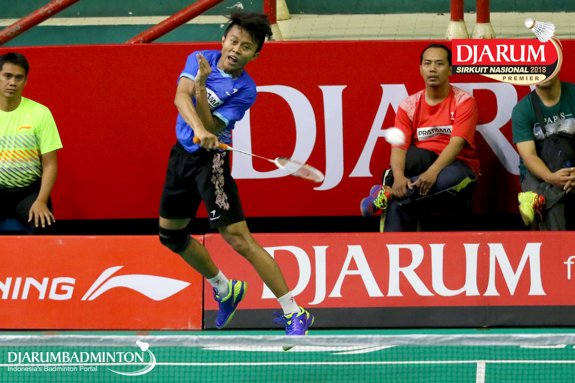 Herdian Muhammad Labib (PB Djarum, Kudus) bersiap menyambar pengembalian