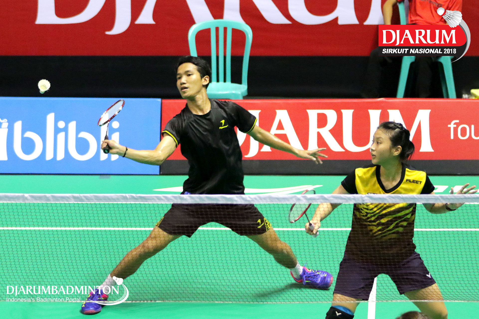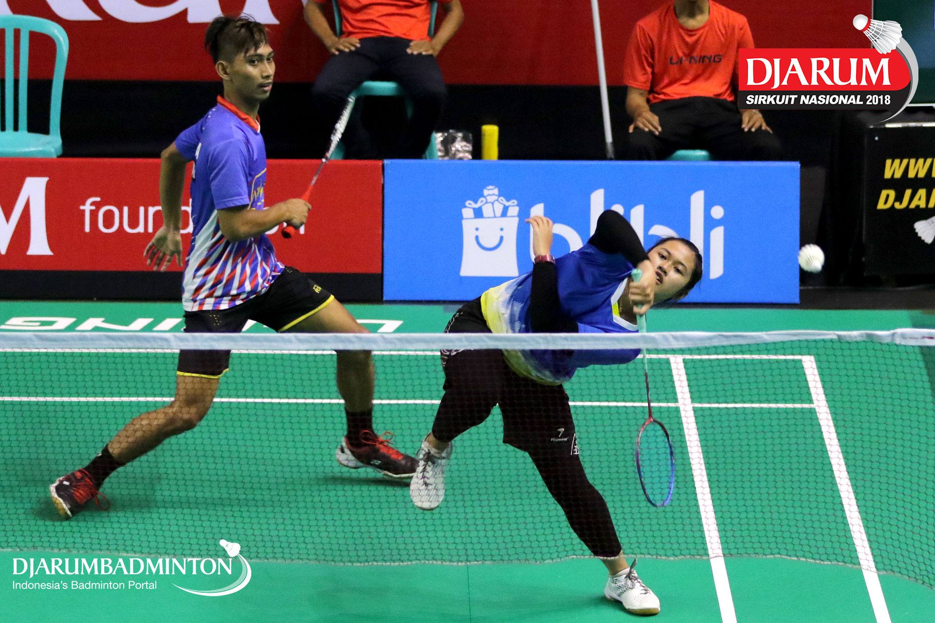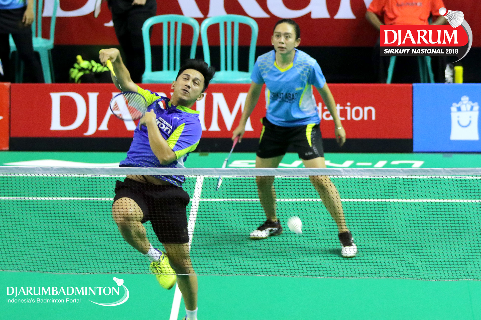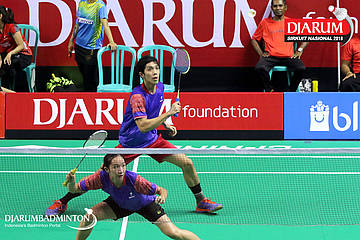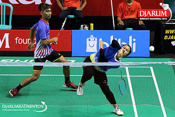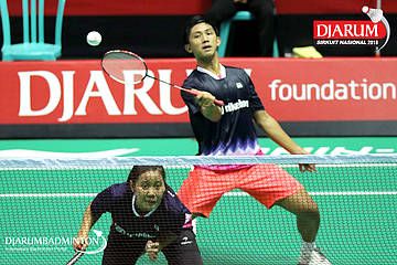 Rizko Asuro/Keshya Nurvita Hanadia (Pertamina Fastron, Jakut+Berkat Abadi, Banjar) menyambar pengembalian