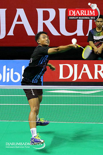 Waldie Riksa Alfarisi (Sangkuriang Graha Sarana PLN Bandung) menyambut shuttlecock