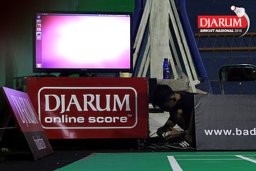 Salah satu operator sedang memasang mengatur perangkat Live Score