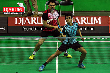 David Pohan/Sigit Sudrajat (Djarum Kudus) bersiap menyambut pengembalian
