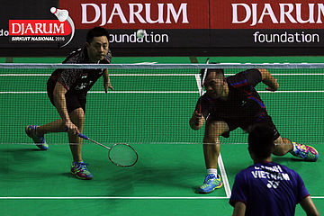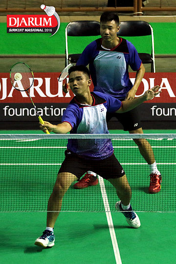 Bao Minh/Duong Bao Duc (Vietnam) mengembalikan shuttlecock