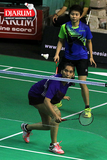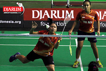 Lisa Ayu/Vanadia Pranasa (Djarum Kudus) menyambut serve