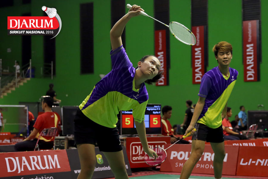 Alvindo Saputra/Vehrenica Debora (Tangkas) Mengembalikan Shuttlecock.