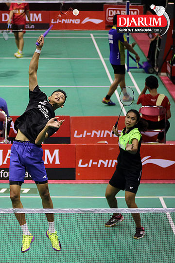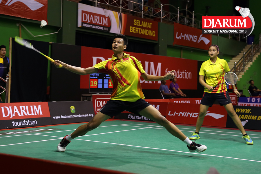 Aditya Muchlis/Annisa Mubarokah (FIFA Badminton) Mengembalikan Shuttlecock.