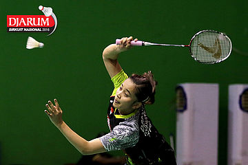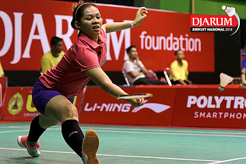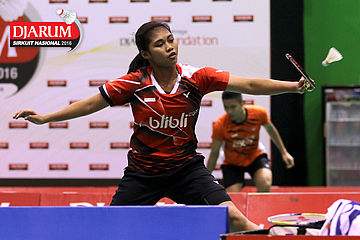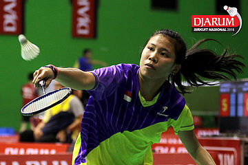 Aprilia Yuswandari (Semen Gresik) Mengembalikan Shuttlecock.