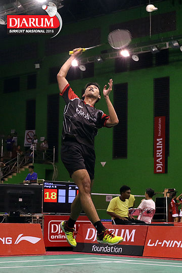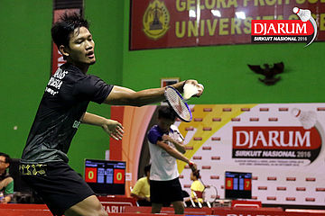 Riyanto Subagja (Djarum Kudus) Mengembalikan Shuttlecock.