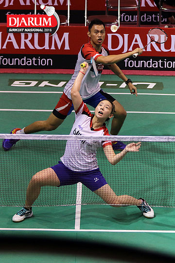 Rehan Naufal/Ribka Sugiarto (Djarum Kudus) Menyambar Pengembalian Tanggung.