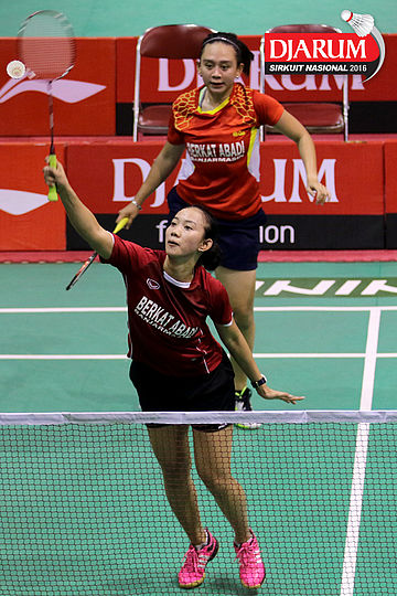 Dian Fitriani/Nadya Melati (Pertamina Fastron) Mengembalikan Shuttlecock.