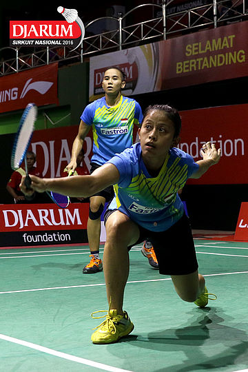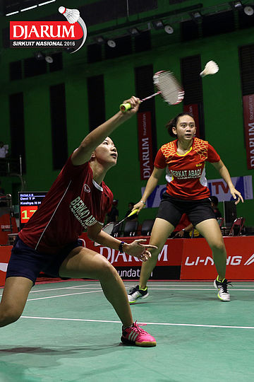 Dian Fitriani/Nadya Melati (Pertamina Fastron) Mengembalikan Shuttlecock.