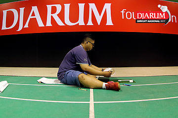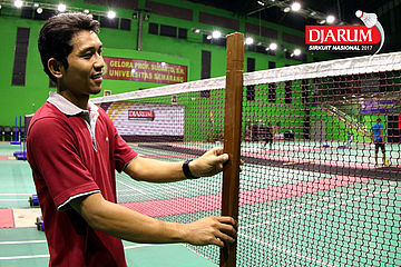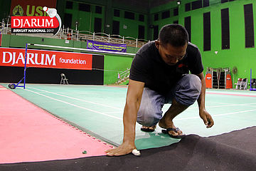 Salah Satu Petugas Saat Menyiapkan Atribut Djarum Sirkuit Nasional Li-ning Jawa Tengah Open 2017