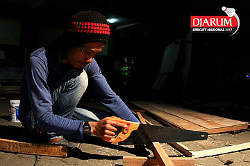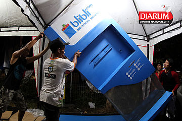 Dua Pekerja Sedang Menyiapkan Logistik Djarum Sirkuit Nasional Li-ning Jawa Tengah Open 2017