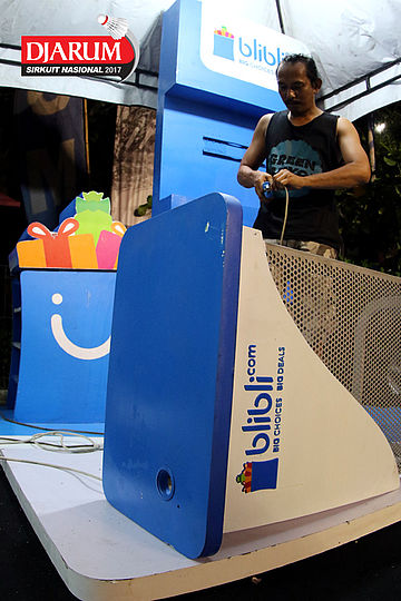 Sejumlah Petugas Sedang Menyiapkan Booth Blibli