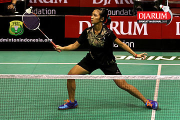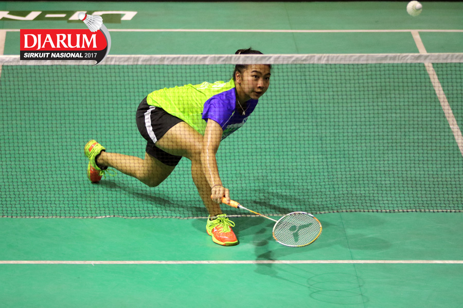 Rahmat Hidayat/Shelandry Vyola (Djarum Kudus) Mengembalikan Shuttlecock