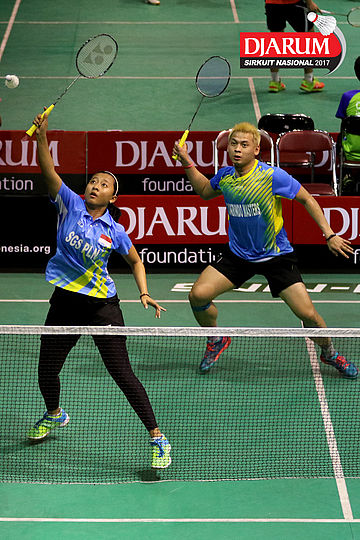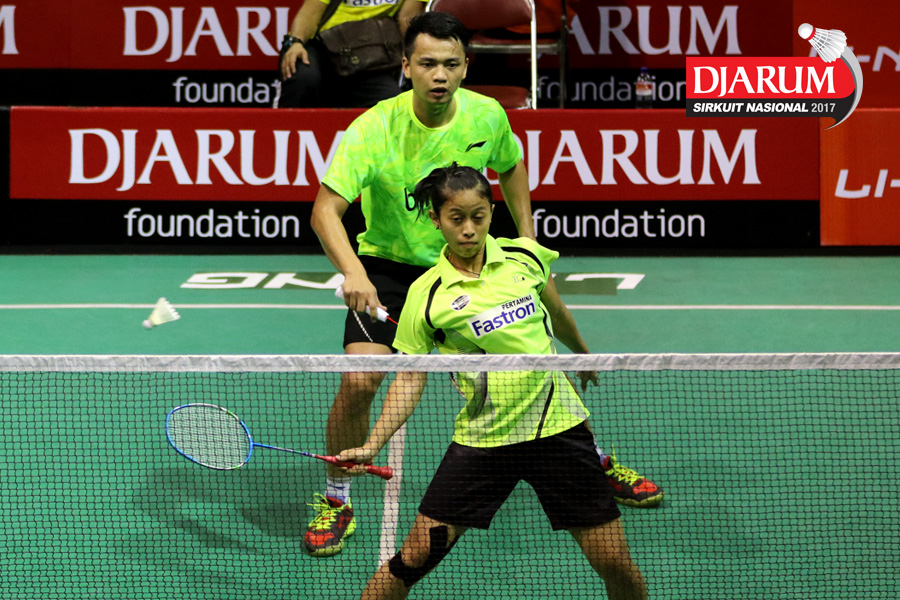 Leo Rollycarnando/Metya Inayah Cindiani (Djarum Kudus) Mengembalikan Shuttlecock