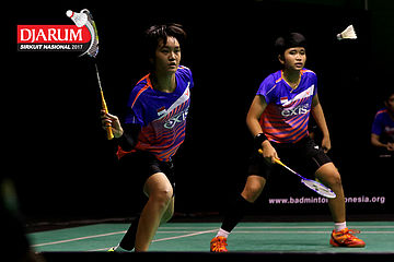 Nita Violina Marwah/Putri Syaikah Ulima Hidayat (Exist) Mengembalikan Shuttlecock