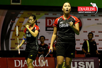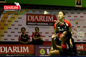 Febby Valencia Dwijayanti Gani/Lisa Ayu Kusumawati (Djarum Kudus) Menghadang Serangan