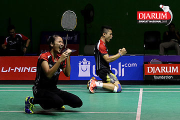 Selebrasi Kemenangan Leo Rollycarnando/Metya Inayah Cindiani (Djarum Kudus)