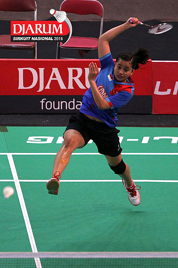 Aprillia Yuswandari (Semen Gresik) mengembalikan shuttlecock