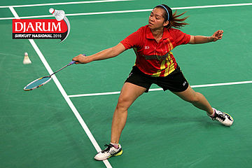 Elizabeth Purwaningtyas (SGS PLN) mengembalikan shuttlecock