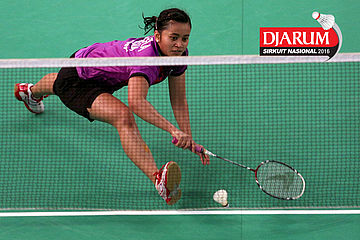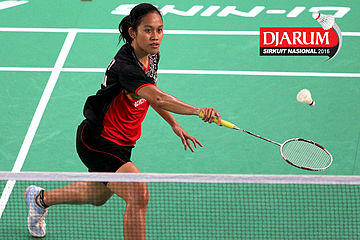Priskila Siahaya (Exist) mengembalikan shuttlecock