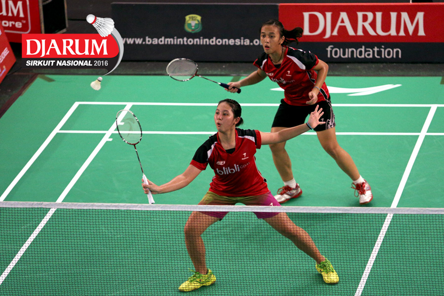Febriana Dwipuji/Ribka Sugiarto (Djarum Kudus) menghadang serangan