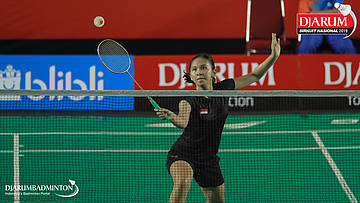 Made Deya Surya Saraswati (Kejora Badung Bali) bersiap menyambar shuttlecock