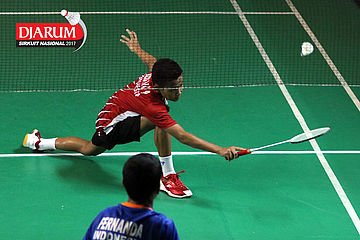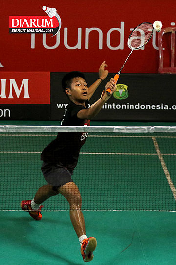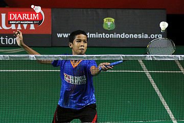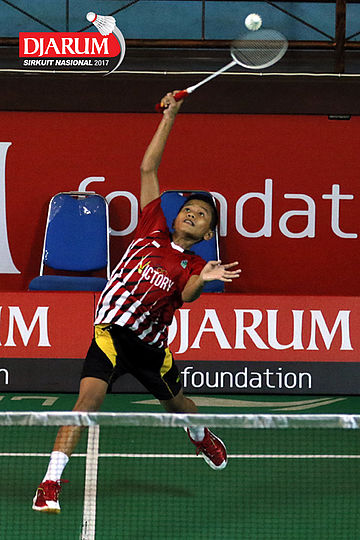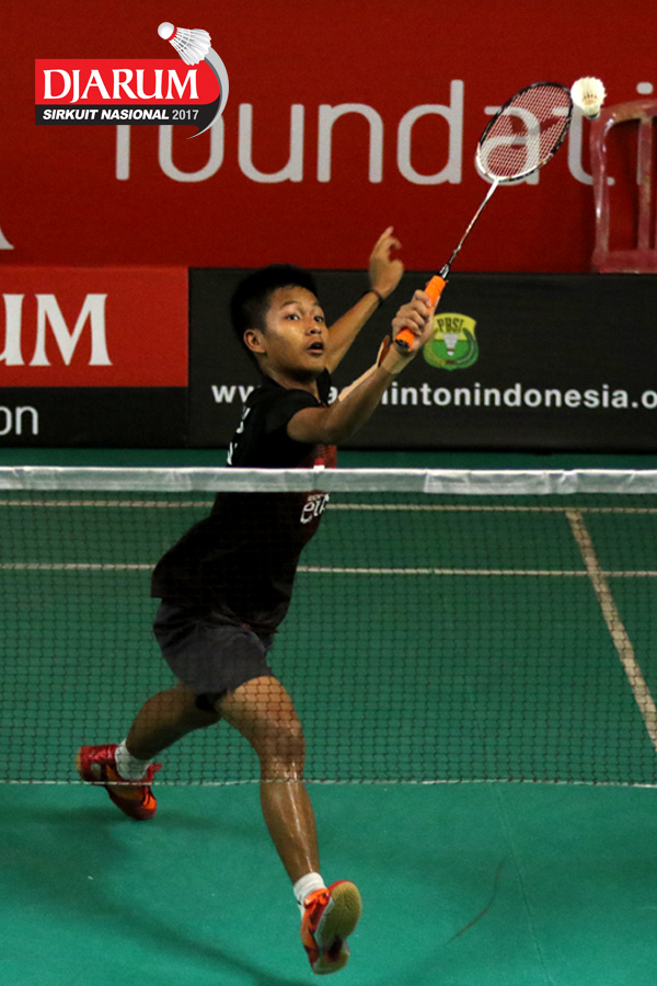 Andika Putra (Victory Bogor) Mengembalikan Shuttlecock