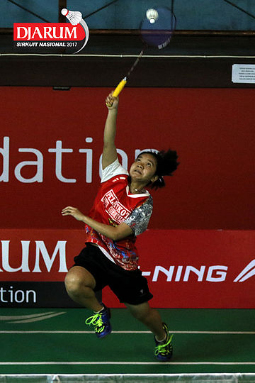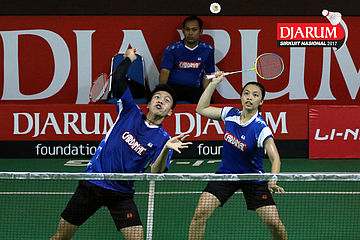 Trikusuma Wardhana/Suci Rizki Andini (Exist/Mutiara Cardinal) Mengembalikan Shuttlecock